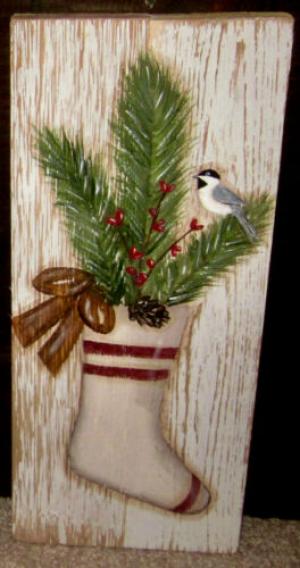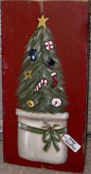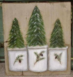 *~*PRIMITIVE*~* HP FOLK ART PRIM WINTER CROCKS *~* TREES *~* RECLAIMED WOOD