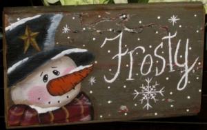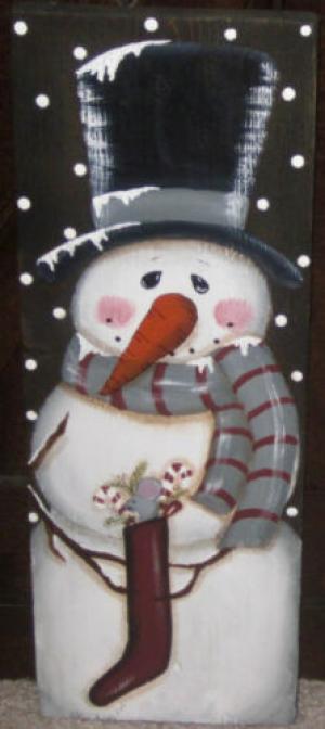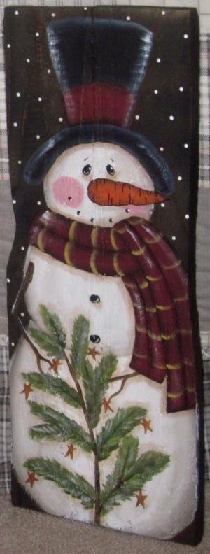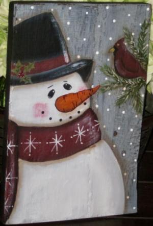 *~*PRIMITIVE*~* HP FOLK ART PRIM SNOWMAN *~* WINTER *~* RECLAIMED WOOD
