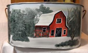 Galvenized metal tub with winter barn scene (1118201804)