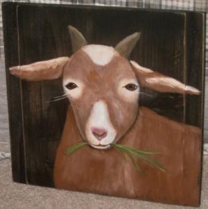 *~*PRIMITIVE*~* HP FOLK ART PRIM GOAT *~* RECLAIMED WOOD