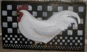 *~*PRIMITIVE*~* HP FOLK ART PRIM CHICKEN *~* CHECKERBOARD *~* BOARD