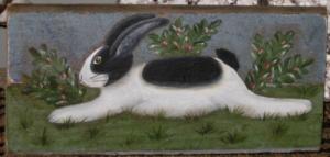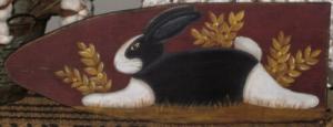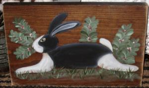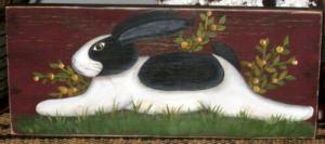 *~*PRIMITIVE*~* HP FOLK ART PRIM BLACK & WHITE BUNNY *~* STRETCHER