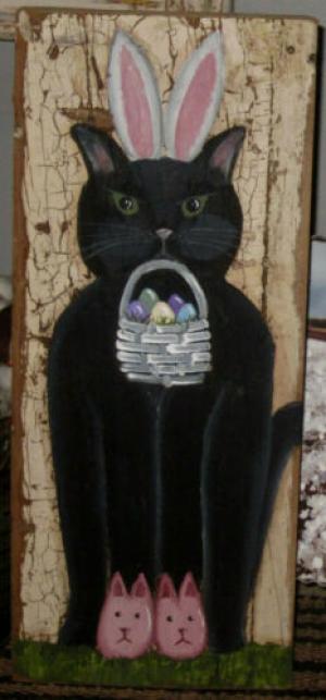 *~*PRIMITIVE*~* HP FOLK ART PRIM ST. PATRICK''S DAY BLACK CAT *~* RECLAIMED WOOD