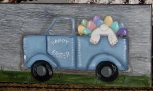 *~*PRIMITIVE*~* HP FOLK ART PRIM WHITE TRUCK * PUMPKINS * FALL * BOARD