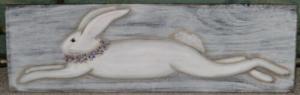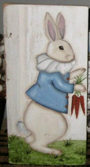 *~*PRIMITIVE*~*HP FOLK ART PRIM CHUBBY BUNNY *~* CARROTS *~* OLD RED BARN WOOD