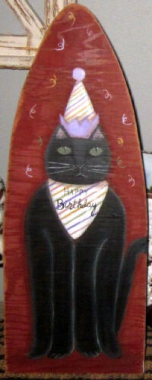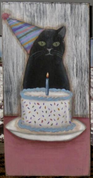 *~*PRIMITIVE*~* HP FOLK ART PRIM BLACK CAT *~* BIRTHDAY CAKE *~* BOARD