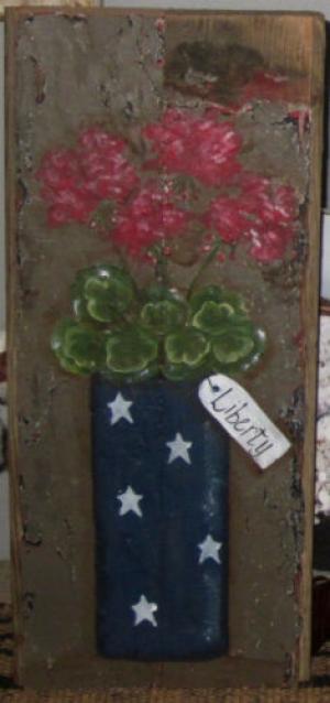 *~*PRIMITIVE*~* HP FOLK ART PRIM AMERICANA * GERANIUM * LIBERTY * RECLAIMED WOOD
