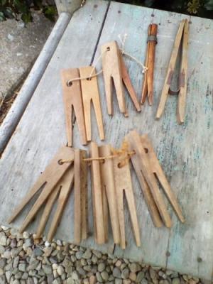 Early Primitive Lot Of 14 Antique Wooden Clothes Pins