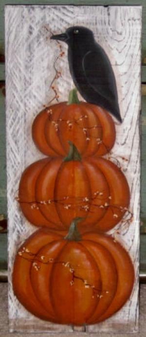 *~*PRIMITIVE*~*HP FOLK ART STACKING PUMPKINS * BITTERSWEET* CROW* RECLAIMED WOOD