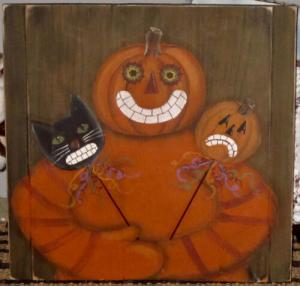 *~*PRIMITIVE*~* HP FOLK ART WHIMSICAL JACK-O-LANTERN * OCT. 31 *~* RELAIMED WOOD