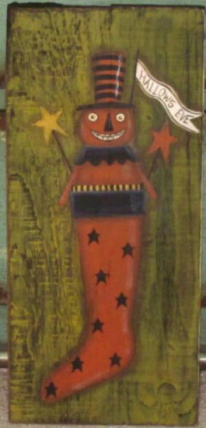 *~*PRIMITIVE*~* HP FOLK ART HALLOWEEN STOCKING * WHIMSICAL JACK * RECLAIMED WOOD