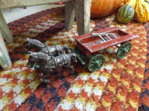 Primitive Vintage Cast Metal Horse Drawn Fire Wagon Toy or Decor 2 Horses Ladder
