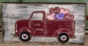 *~*PRIMITIVE*~* HP FOLK ART VALENTINE RED TRUCK *~* HEARTS *~* RECLAIMED WOOD