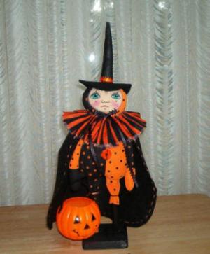 Primitive Folk Art Standing Halloween Witch "Trick or Treat"