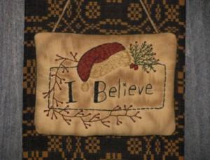 Primitive Stitchery Hanger ~ I Believe Santa Hat ~ Christmas