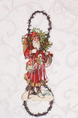 Amazing Antique Die-Cut Santa Clause & Victorian Tinsel Christmas Ornament!!!