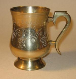 ★ NICE ANTIQUE BRASS TANKARD WITH ENGRAVED PATTERNS ★