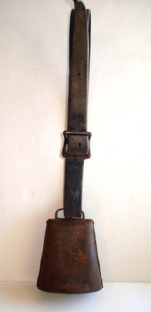 ANTIQUE VINTAGE COW BELL WITH LEATHER COLLAR LARGE SOUND