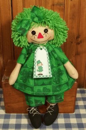 Handmade Irish Raggedy Ann Doll w GREEN HAIR ST Patricks Day Shamrocks