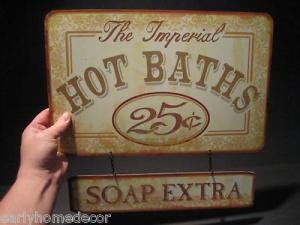 Primitive Vintage Antique Style, Tin Bath Folk Art Trade Merchant Sign