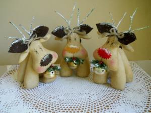 Primitive Folk Art Set of 3 Whimsy Christmas Reindeer