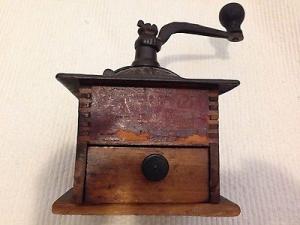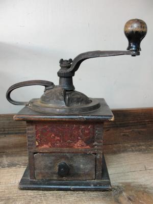 Antique Cast Iron Wood Hand Crank Coffee Grinder
