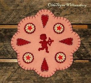 Primitive VALENTINES Folk Hearts & Cupid Wool Felt Penny Rug ~ Candle Mat