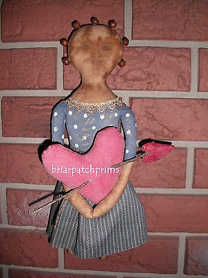 Primitive Valentine''s Day Doll w Heart Vintage Look Penciled Face