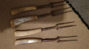 Primitive Forks - Civil War Era - 2 Tine -Bone Handle-Lot of 4
