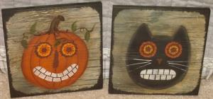 *~*PRIMITIVE*~* HP FOLK ART PRIM WHIMSICAL CAT & JACK-O-LANTERN *~* BOARDS