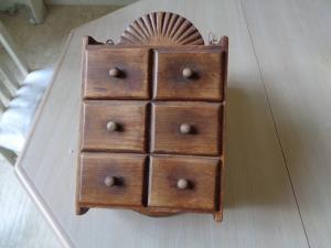 Antique wall mounted spice cabinet / chest 6 drawers , Made of pine , Nice