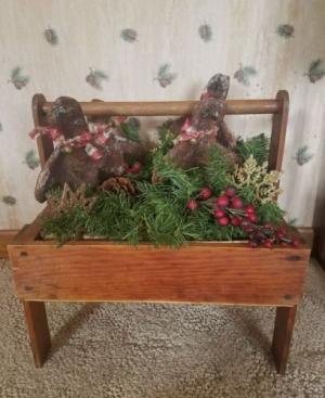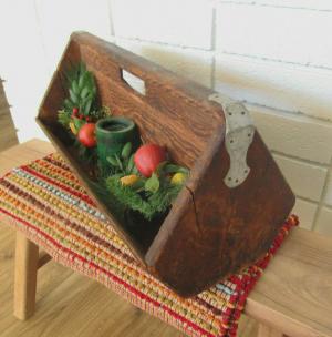 Wood box Carrier Strawberry Picking Primitive Christmas Gingerbread Farmhouse