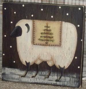 *~*PRIMITIVE*~* HP FOLK ART PRIM WINTER SHEEP *~* TREE *~* HOLIDAY *~* BOARD