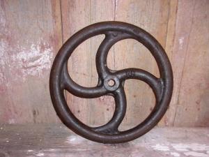 Antique Vintage Cast Iron Hand Crank Flywheel~Rustic Decor~Old Motor Grader Part
