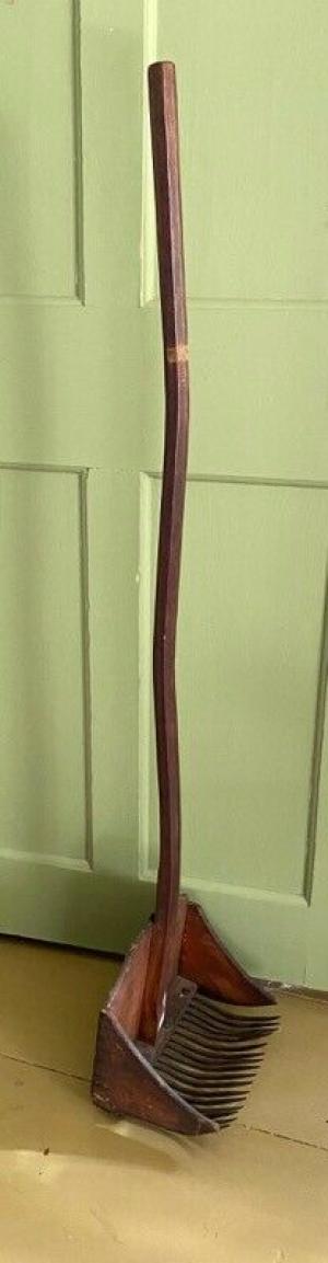 Antique STAND-UP CRANBERRY RAKE w WROUGHT IRON TINES, c. Late 1800s