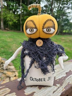 Pumpkin Head Orange Oct 31st Primitive Doll Fall Halloween Doll Folk Art Poke