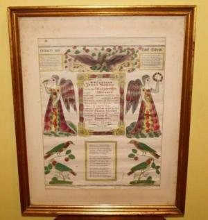 Antique 1859 Pennsylvania Dutch Hand Colored Birth & Baptism Fraktur Framed