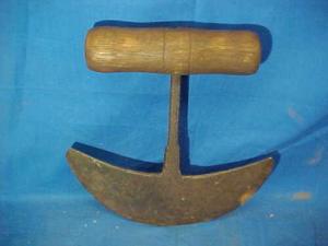 Early 19thc HAND FORGED Country PRIMITIVE Wood Food CHOPPER 9 x 8