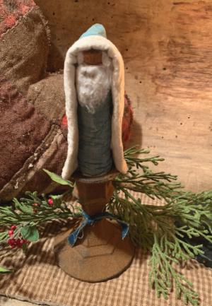 Handmade 8 In Old World Santa In Early Blue From An Old Quilt & Early Batting