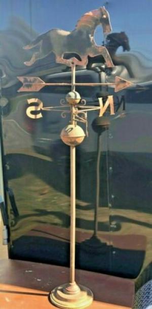 Vintage Tin Older Running Horse Weathervane & Lightning Iron Rod & Base 48"