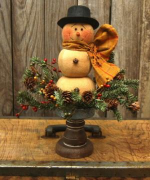 HANDMADE PRIMITIVE SNOWMAN DOLL WOOD SPINDLE WINTER FOLK ART