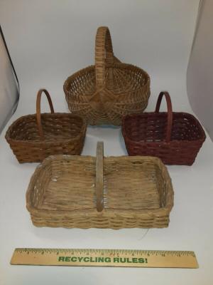 4 Antique primitive small Split Oak / HICKORY BASKET LOT EGG BUTTOCKS BERRY EXC