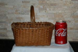 Antique - Small Rectangular - Splint woven Basket - Carved Handle - 4" Tall