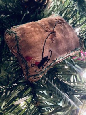 EARLY INSPIRED PRIM HANDSTITCHED PICTURE*SAMPLER TUCK-IN* MERRY OLDE CHRISTMAS*