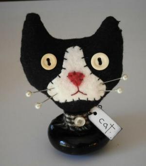 PRIMITIVE BLACK TUXEDO CAT DOORKNOB MAKE DO PIN CUSHION PFATT PRIMPENNY