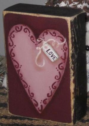 *~*PRIMITIVE*~* HP FOLK ART PRIM VALENTINE HEART *~* LOVE *~* SHELF SITTER