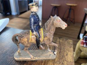 ANTIQUE VINTAGE (1800s?) POLICEMAN ON HORSE HAND-PAINTED EARLY COMPOSITE TOY