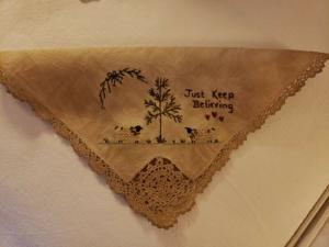 ~*Awesome*~ "JUST KEEP BELIEVING" Stitched Doily! Oh my! ❤
