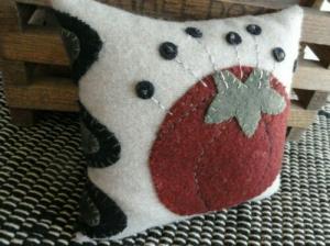 ~pRiMiTiVe Stitchery~Wool Applique Pin Cushion~Tomato~Penny Rug Tongues~Pillow~