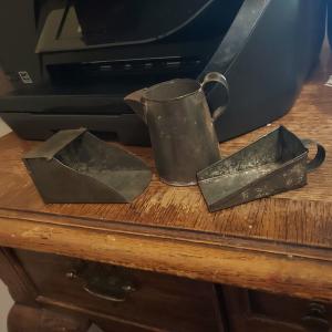Primitive Tin Ware Kitchen Scoops Mini Pitcher